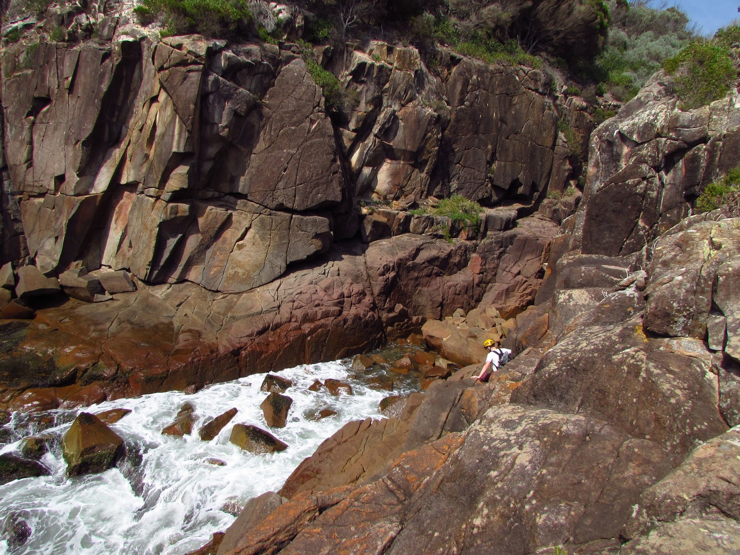 This crag is tide dependent, so we'll aim to be walking in around 8:30 am, as the tide is on it's way out. Anna Bay and One Mile Beach are some really nice spots up near Nelson Bay, so the trip is worth it even before the climbing! We'll be climbing in a spot that overlooks the water, with a beautiful beach on our walk back from the crag to the cars, so pack your swimmers!